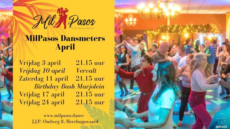 We organiseren op zaterdagen wel speciale edities van d eMilPasos Dansmeters zoals de Valentijnseditie op zaterdag 14 februari, de Birthdaybashes van Marjolein en Edgar, ons 5-jarig bestaan in juni en Halloween.
